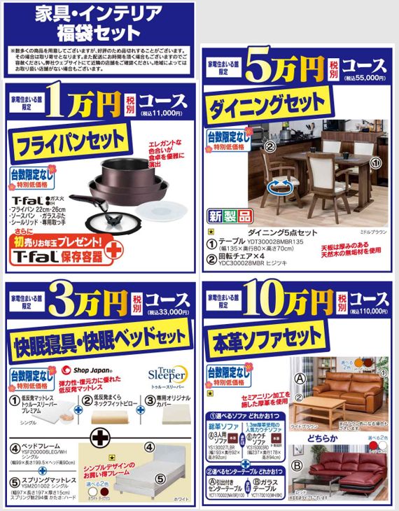 【ヤマダウェブコム限定「お年玉抽選福袋」】という、12月初旬に予約を受け付け、1月2日に抽選結果がメール通知される福袋も現在はなくなっています。通常の福袋と違って最初から中身ネタバレしていて値段も安く、家電・ゴルフクラブ・人気ゲームなど充実の内容で人気だったのですが。